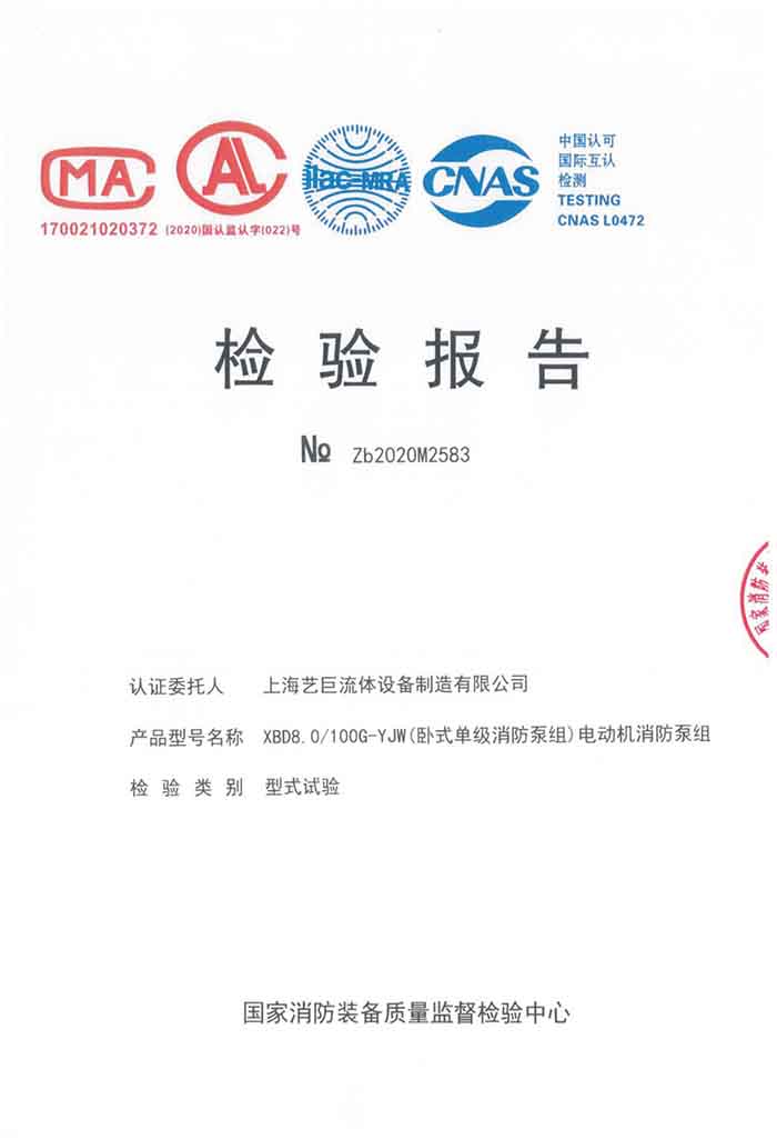 公司榮譽 XBD8.0/100G-YJW電動機消防泵組檢驗報告 更新時間 2024-06-29 14:39 閱讀 上一篇:XBD16.0/5W-CDL電動機消防泵組檢測報告 下一篇:XBC13.0/320G-YJS柴油機消防泵組檢驗報告