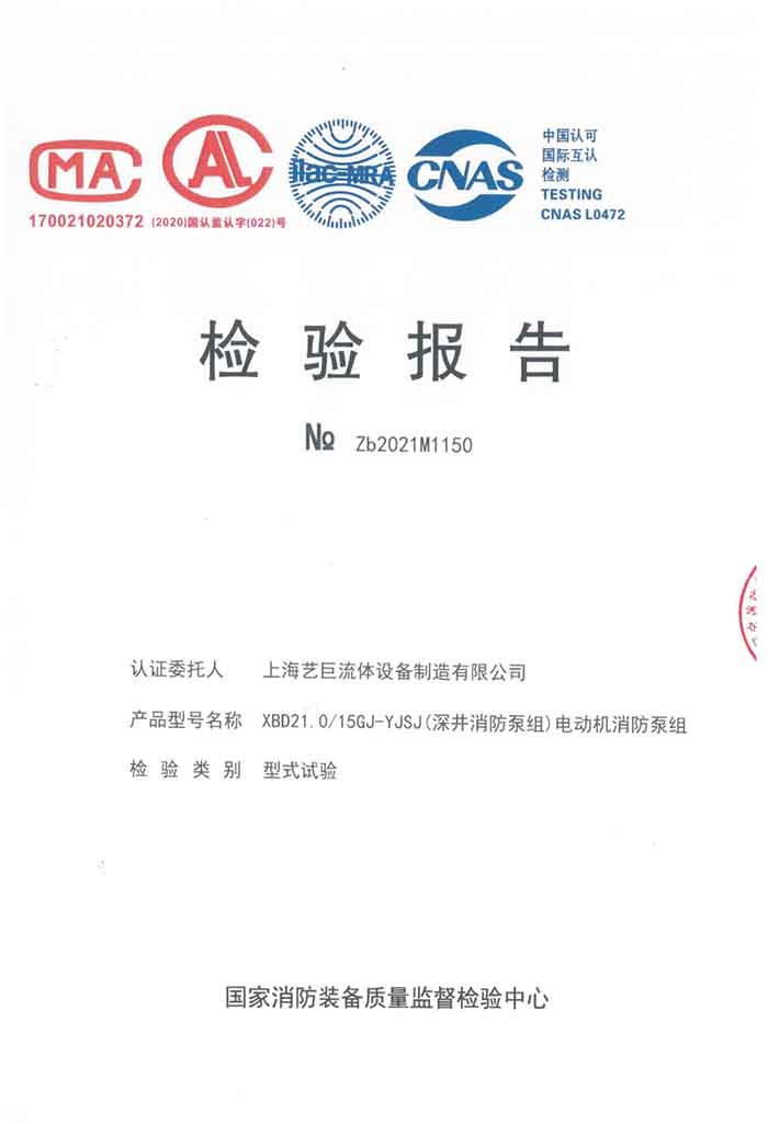 XBD21.0/15GJ-YJSJ電動機消防泵組檢驗報告